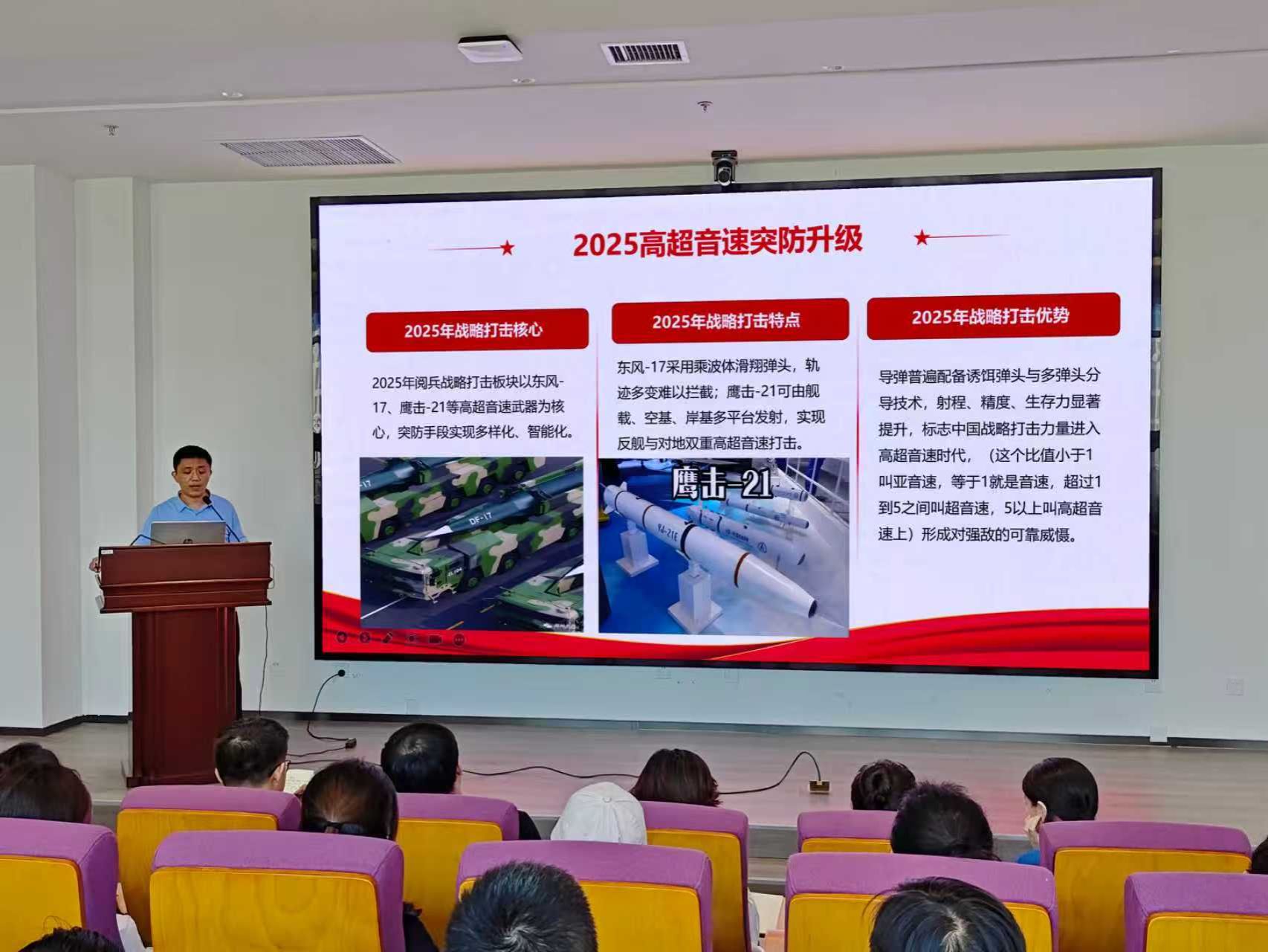 为纪念中国人民抗日战争暨世界反法西斯战争胜利80周年,学习习近平总书记在纪念大会上的重要讲话精神,马克思主义学院于9月4日下午,组织青年教师杨彪博士在图书馆二楼多媒体学习空间做了《从九三阅兵透视中国外交新格局》的主题报告,学院领导及全体教师、best365部分学生参加,报告由马克思主义学院院长姚玉斐主持。