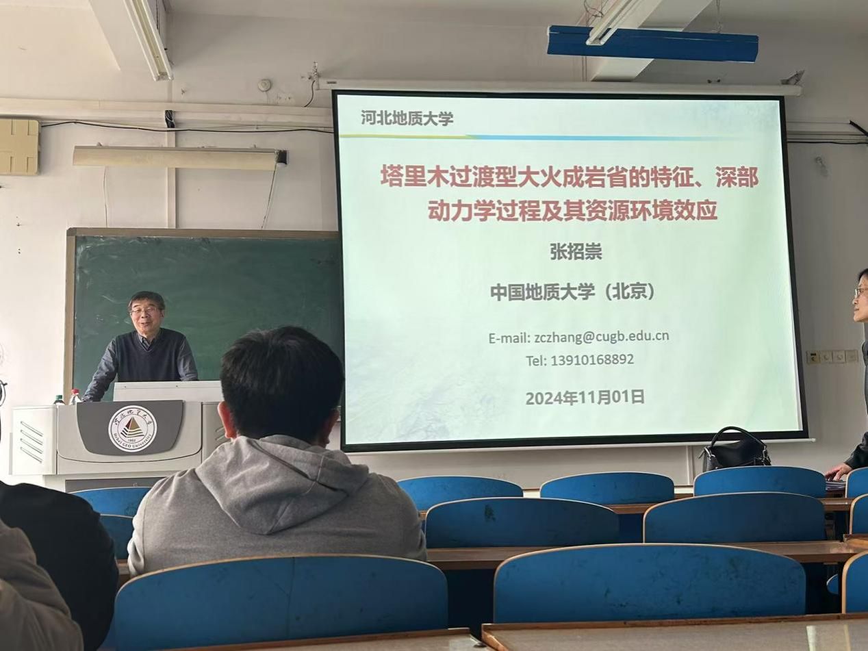 11月1日下午,中国地质大学(北京)张招崇教授应邀在best365教一楼605作题为《塔里木过渡型大火成岩省的特征、深部动力学过程及其资源环境效应》的学术报告。本次报告由地球科学学院副院长李英杰教授主持,地球科学学院60余名师生参加。