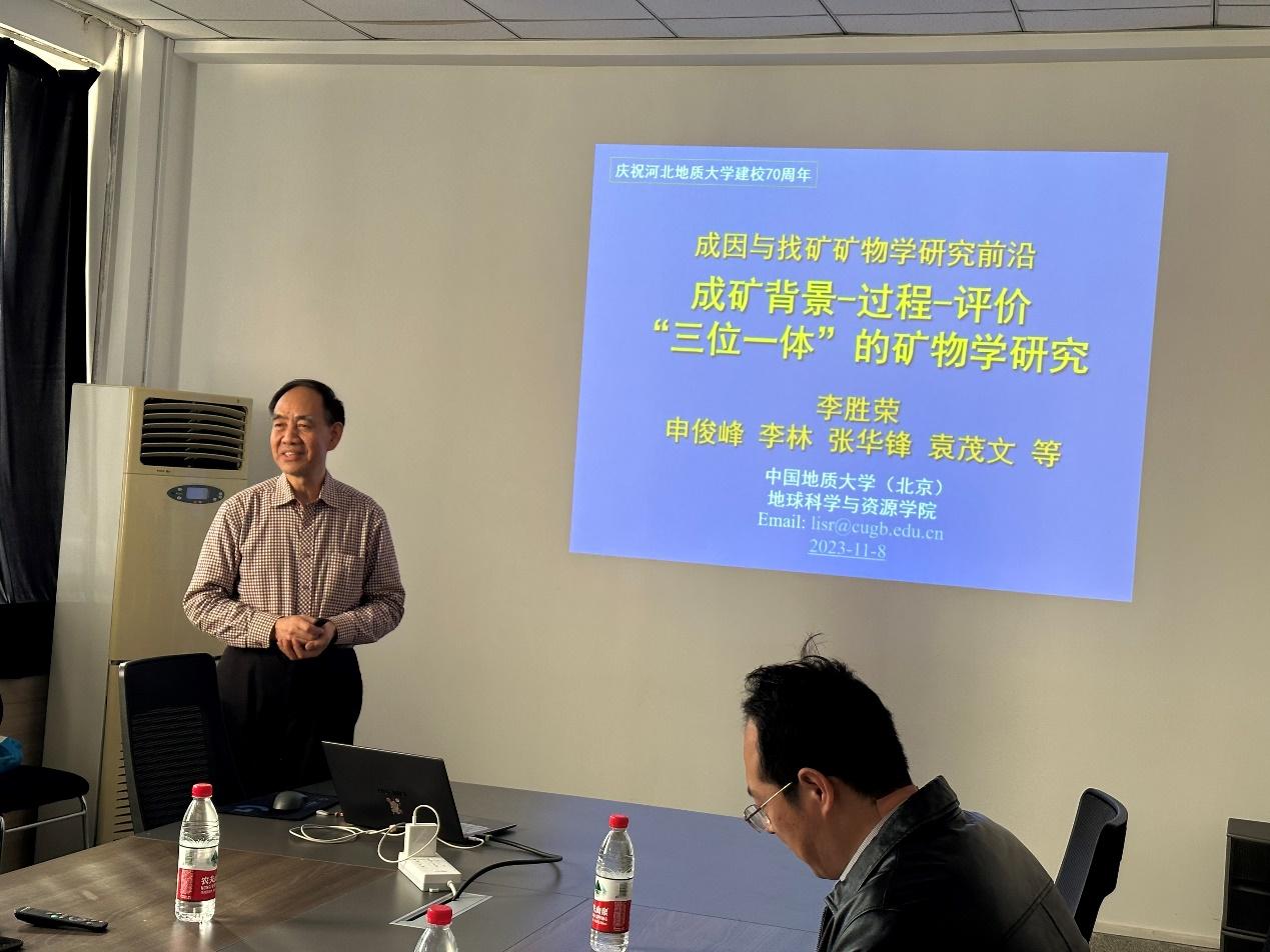 李胜荣教授做了题为“成矿背景-过程-评价“三位一体”的矿物学研究”的学术报告,从成矿地球动力学背景的矿物学研究、成矿过程与条件的矿物学研究和成矿预测和勘查区深部评价的矿物学研究三个方面详细地介绍了如何应用矿物学方法进行矿产资源及地质过程研究。