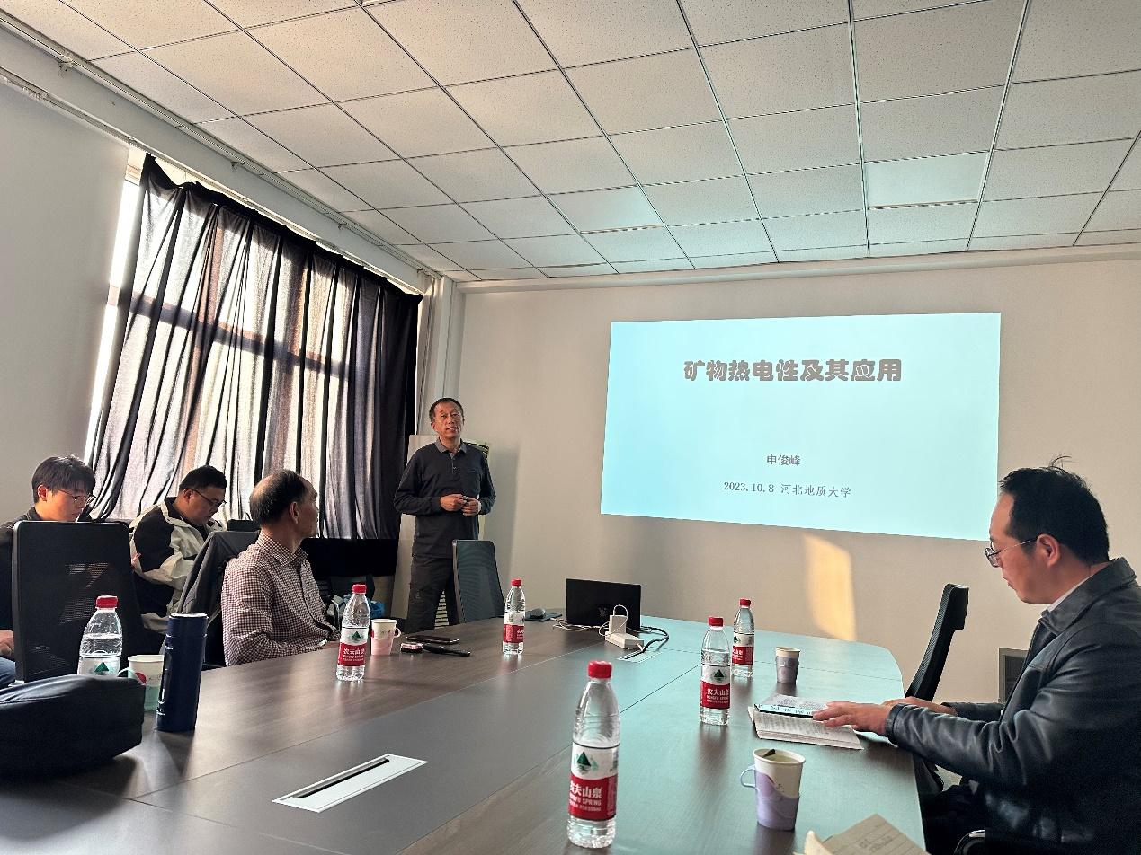 申俊峰教授做了题为“矿物热电性及其应用”的学术报告,报告详细介绍了从热电性概念和热电效应原理到矿物热电性及其测试方法在找矿、矿石质量评价、矿物材料、地震预测和小行星防御等方面的应用价值和潜力。