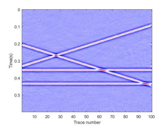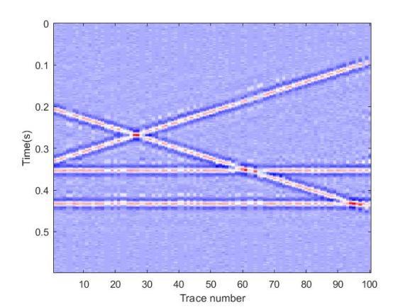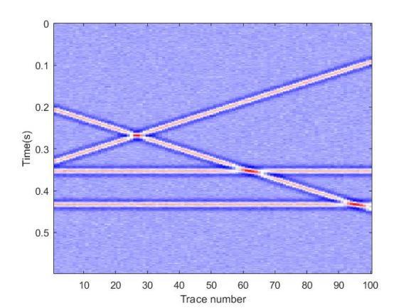 图1. 模拟含噪数据: (a) 原始数据;(b)60%随机采样数据。