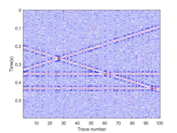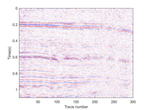 图4. 含噪实际数据:(a)原始数据;(b)60%随机采样数据。