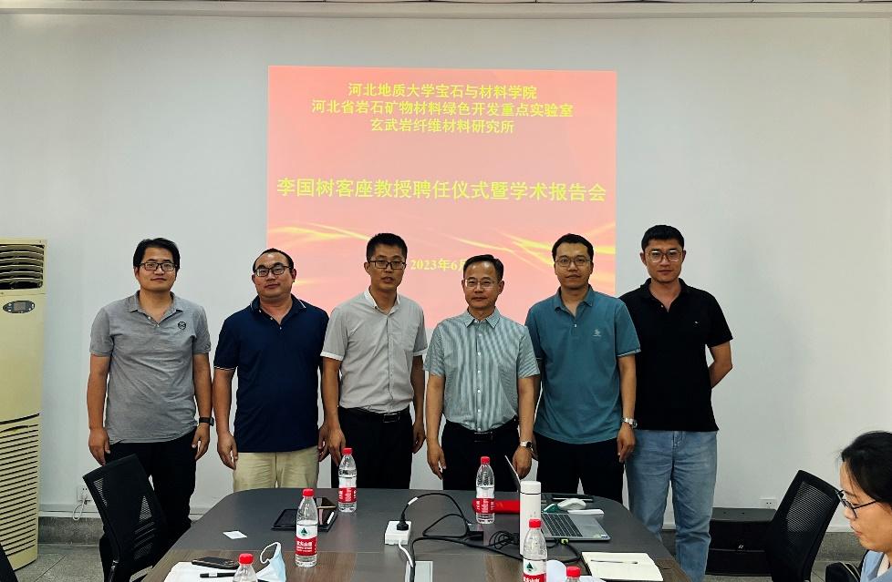 2023年6月12日,宝石与材料学院和河北省岩石矿物材料绿色开发重点实验室举行李国树客座教授聘任仪式暨学术报告会。河北省岩石矿物材料绿色开发重点实验室、best365足球官网玄武岩纤维材料研究所主要成员及宝石与材料学院相关专业教师、研究生和部分本科生共计60余人参加本次会议,会议由杨春成副教授主持。
