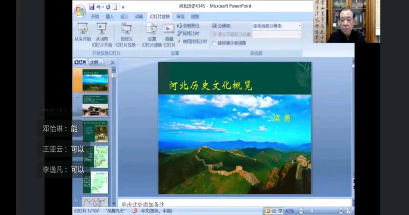梁勇研究员把讲座内容概括为“四三四五”,高度的概括与其中所包含的波澜壮阔的历史的进程让同学们对河北历史文化充满渴望。梁勇研究员娓娓道来,图文并茂,在视听的双重体验中阐述“四三四五”的具体内涵。