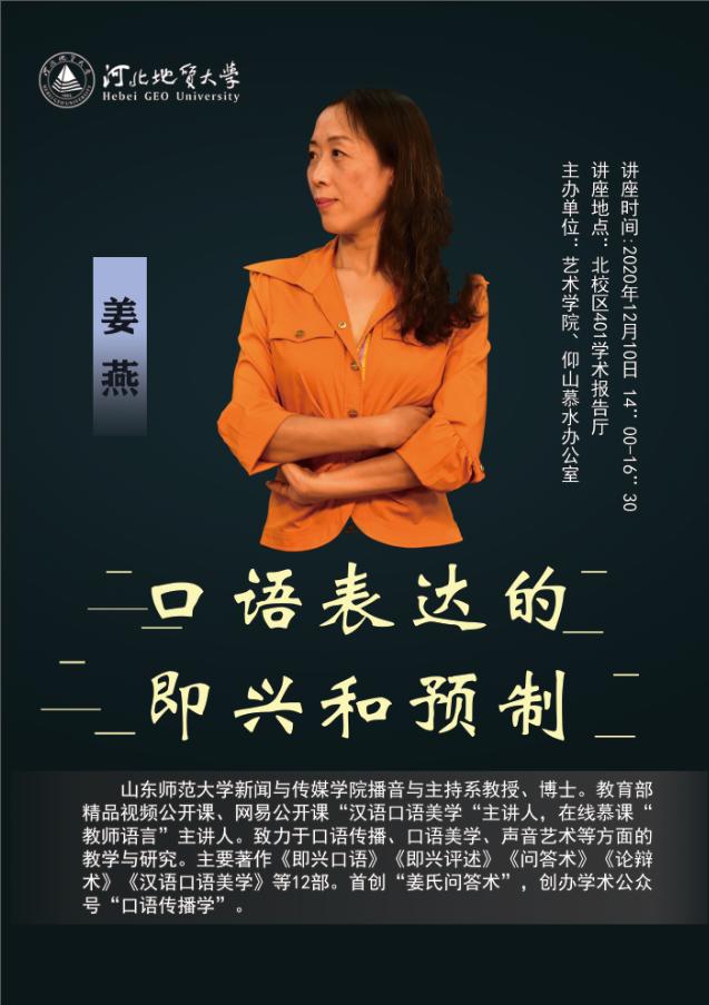 山东师范大学新闻与传媒学院播音与主持系教授姜燕,应邀来best365北校区做主题讲座,欢迎广大师生踊跃参加。