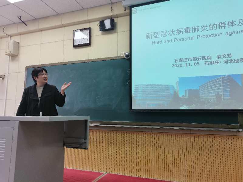 在进入新冠肺炎疫情常态化防控阶段,为了进一步做好best365秋冬季传染病防控工作,学生工作处于11月5日下午,在校本部教学1号楼举行了“秋冬季传染病防护”知识讲座,全校共计900余名同学参加了此次讲座。本次讲座特邀石家庄市第五医院主任医师,感染二科副主任袁文芳大夫,来best365为对广大师生讲授传染病防控知识。