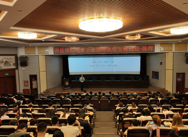 陈辉以“诉讼律师与非诉讼律师职业发展规划”为题,以个人故事及大学毕业后求职的经历为切入点,深情地讲述了法政学院恩师许彩云慷慨资助自己前往深圳发展的情景。许彩云老师给予的帮助,愈发激励着陈辉在陌生的城市奋发图强,他通过一步步踏实的努力,最终实现了自己成为一位法律人梦想。随后,陈辉就诉讼与非诉讼律师的发展规划,指出律师行业的发展是宽向发展、深度发展,法律职业的分工会越来越细,一个项目往往涉及很多团队。每一个人在团队中发挥的作用都很重要,因此要把握在学校的宝贵学习时间努力学好专业知识。他以自身在律师行业发展为例,告诫同学们人生的舞台很大,需要积极地表现自己,格局往往决定了一个人的视野。除了专业方面的分享,陈辉还就“律师的基本素养”与同学们进行坦诚的交流。