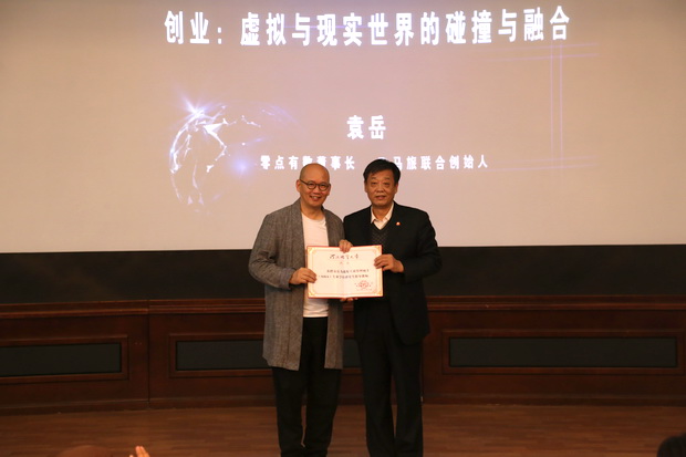 袁岳用幽默风趣的语言让两个多小时的演讲妙趣横生。他游历过130多个国家和地区,投资过420多家公司,集企业家、投资人、作家、主持人、自媒体人、美食家、旅行家、社会活动家多个身份于一身,他丰富的经历和渊博的知识让在场的同学赞叹。演讲中,他分享了自己对知识、创业以及未来的一些看法,强调决断力和行动力对于创业者的重要性。他鼓励大学生应把握机遇,懂得架构自己的梦想;要敢想敢做,持之以恒付诸行动;要博览群书,懂得摘取对自己有用的知识付诸实践。