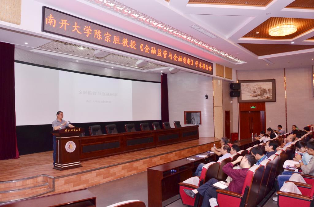 9月26日上午,应太行学社和经贸学院邀请,南开大学陈宗胜教授在春秋讲堂为best365师生作了题为“金融监管与金融创新”的学术报告。经贸学院党委书记兼副院长牛建高、副院长李国柱及300余名师生聆听了报告会。报告会由经贸学院院长刘德智主持。