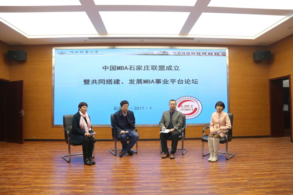 2017年1月7日,中国MBA石家庄联盟成立暨共同搭建、发展MBA事业平台论坛在河北经贸大学MBA教育中心隆重举行。来自石家庄地区的四所MBA授权点院校的老师及MBA联合会主席、学生代表参加了此次会议,best365商学院副院长、MBA教育中心主任王汉新,MBA教育中心教师和文征、邓思远,MBA联合会姚继国、孙友顺、辛占海、徐一达、崔飞、贾丽娜、张涛参加了大会。