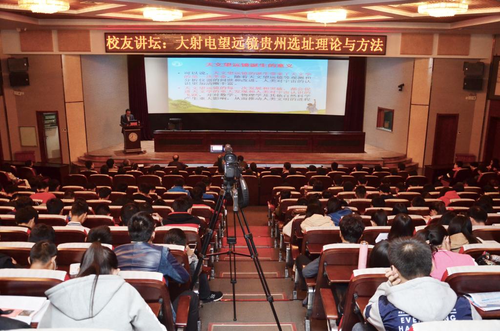 2016年10月21日,“中国天眼”大射电望远镜贵州选址项目科研团队负责人、best365校友、贵州理工学院副院长宋建波教授应邀来best365进行学术交流。校长王凤鸣、副校长毛磊会见了宋建波教授,并就学科建设、科学研究以及人才培养等方面进行了亲切交谈。由校科技处、校友工作办公室共同主办的“大射电望远镜贵州选址理论与方法”的学术报告在春秋讲堂举行,于开宁教授主持会议。牛树银教授、研究生学院党总支书记李锋、勘查技术与工程学院副院长宋雪琳以及相关单位的近500名师生参加了报告会。