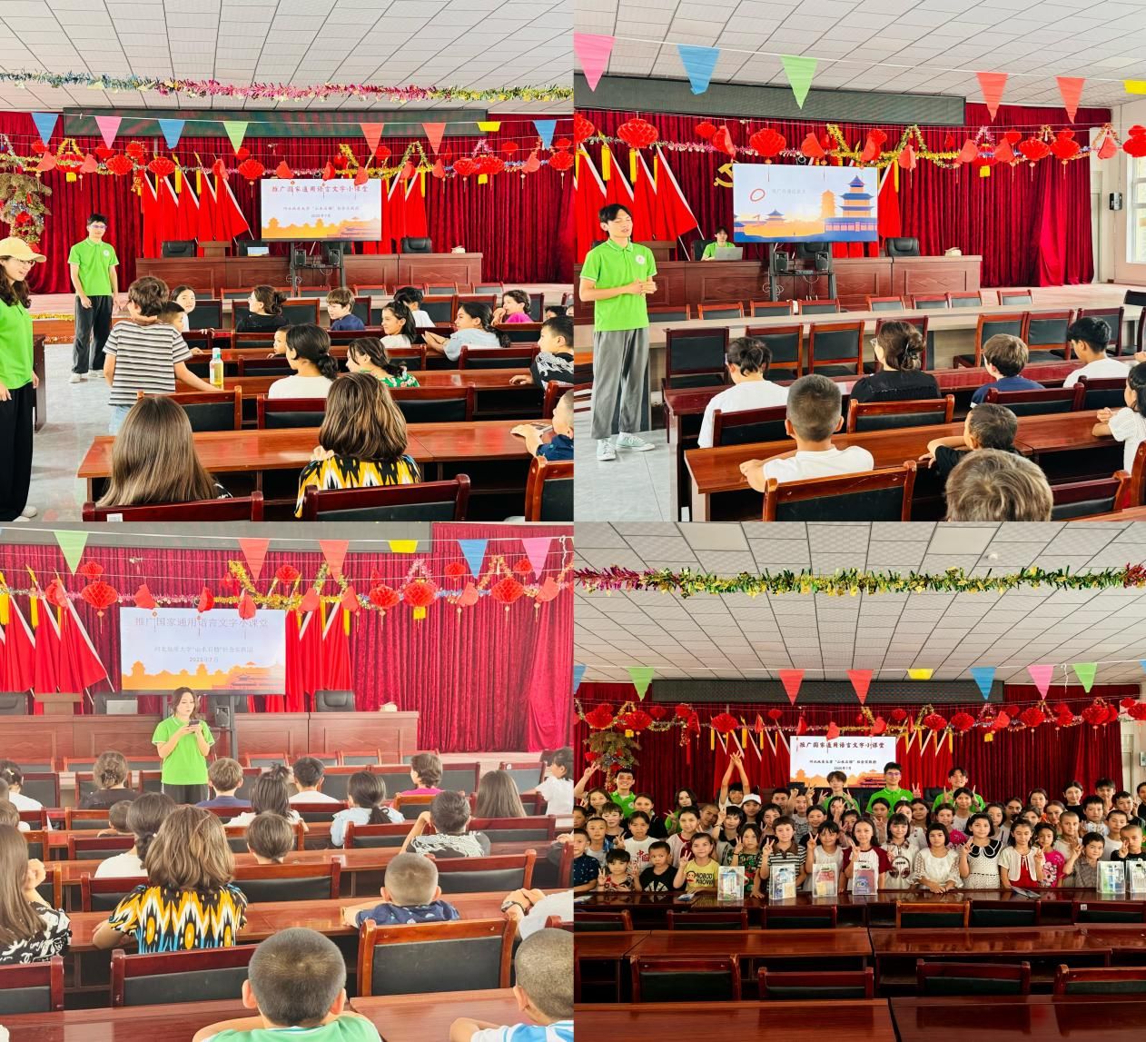 同时,与社区中小学生共同开展“铸牢中华民族共同体意识”主题活动,以喀什历史为切入点,共同交流各族人民共同创造的灿烂文化,此外实践团成员通过“推普”小课堂互动,共同提升同学们的国家通用语言表达能力。主题宣讲、“故事里的中国”、猜字谜、绕口令比拼、经典诗词朗诵、知识问答等形式,激发了孩子们学习普通话的兴趣,。在互动过程中,实践团成员还为孩子们送上了学习文具等纪念品,鼓励他们努力学习,用知识改变命运。