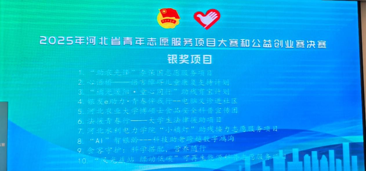 近日,由共青团河北省委、河北省委社会工作部、河北省教育厅、河北省水利厅、河北省文化和旅游厅、河北省卫生健康委、河北省残联共同主办,河北省青年志愿者中心、河北省青年志愿者协会、共青团邯郸市委、共青团涉县县委共同承办的2025年河北省青年志愿服务项目大赛和公益创业赛决赛在邯郸涉县举办。best365信息工程学院申报的《银发e助力·青春伴我行——电脑义诊进社区》志愿服务项目,凭借扎实的服务基础、鲜明的专业特色和显著的社会效益,在435个参赛项目中脱颖而出,荣获大赛银奖!