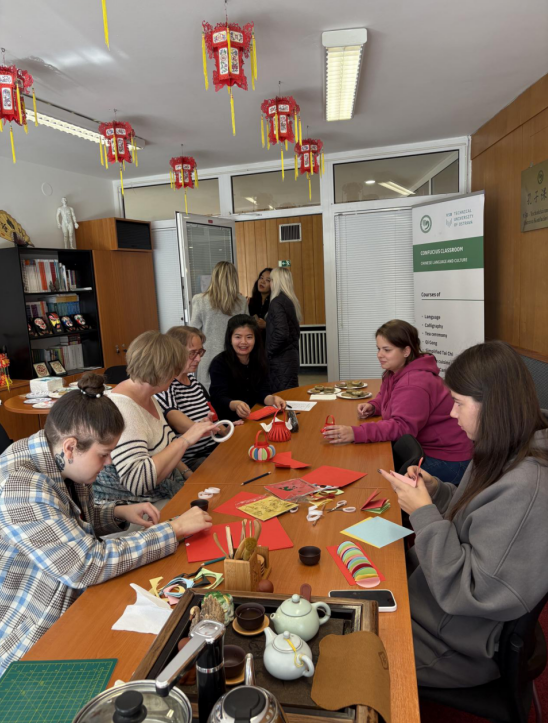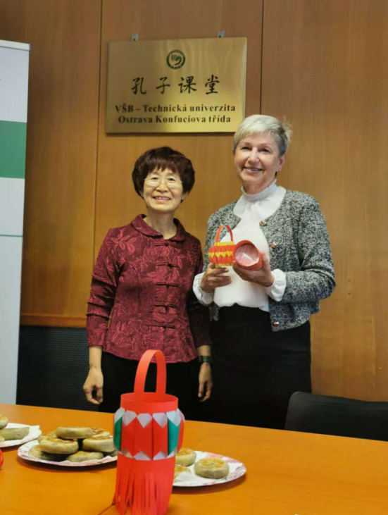 10月13日,孔子课堂精心策划并成功举办了一场别开生面的“月饼节”活动。活动前,李金英带领两名工作人员利用周末时间精心采购原料,制作了二百余枚“纯手工”月饼;傅莞尔通过校园邮件系统进行了广泛宣传,并于课后将汉语班的学生们召集到孔子课堂活动室,进行了一场手工月饼“现场教学”。本次活动还特邀奥斯特拉发技术大学国际交流处处长伊特卡出席活动,与同学们一起制作灯笼,了解中国传统节日,品尝手工月饼。大家对系列活动的成功举办赞不绝口,希望孔子课堂日后举办更多丰富多彩的文化活动,增强交流,加深了解。