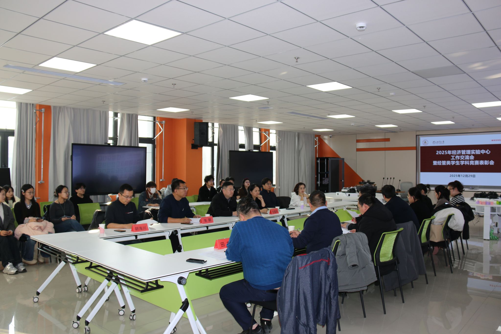 为总结本年度实验教学与学科竞赛工作成果,进一步提升经济管理实验中心的建设水平,激发师生参与学科竞赛的热情,12月29日下午,实验实践教学中心在实验室二楼201举办了“2025年经济管理实验中心工作交流会暨经管类大学生学科竞赛表彰会”。经济学院、管理学院相关领导、教师代表、获奖学生代表及经济管理实验中心全体教师参加了本次会议。会议由实验实践教学中心杨武岐主持。