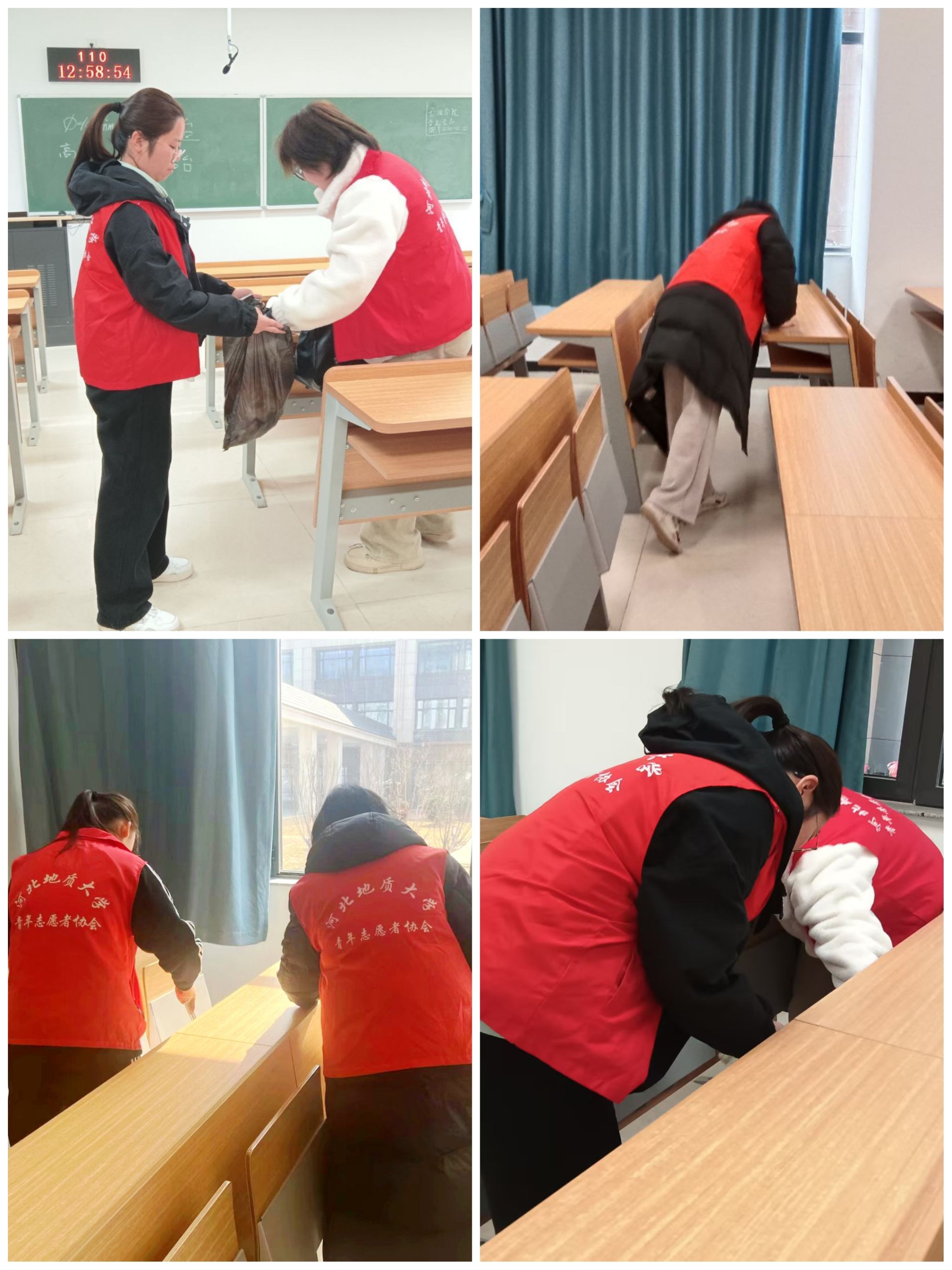 为弘扬新时代雷锋精神,保护校园环境,营造美丽、和谐、干净的学习和生活氛围,3月5日中午,青年志愿者协会联合管理学院志愿服务队、经济学院志愿服务队,分别在校本部、北院和新校区开展了课桌清理、楼道清扫、美化校园等志愿服务活动。志愿者们分工明确,团结协作,认真清理课桌和教室环境,他们的勤劳身影成为校园里一道靓丽的风景线。