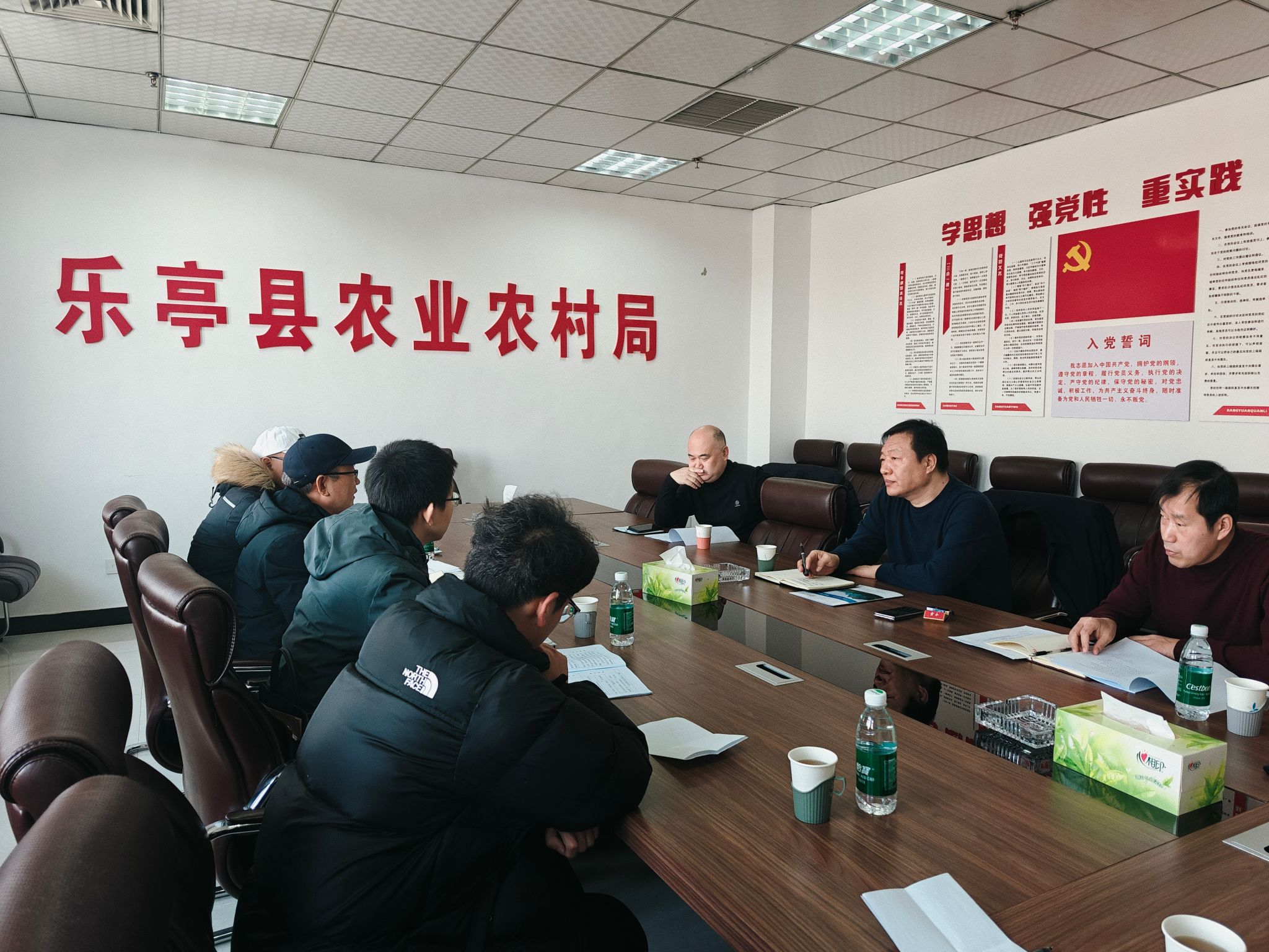 随后,best365师生联合河北地质五队技术人员赴乐亭县开展社会实践活动,团队一行来到乐亭县农业农村局进行对接交流,乐亭县农业农村局党组书记、局长朱林涛等4人参加座谈,各方就高标准农田建设、耕地质量提升、无人农场建设、社会实践基地建设等进行了深入交流。座谈结束后,实践师生还到乐亭县“数字乡村·智慧城市”服务展示中心参观学习,深入了解乐亭县书香乡村建设体系及相关运营服务情况。