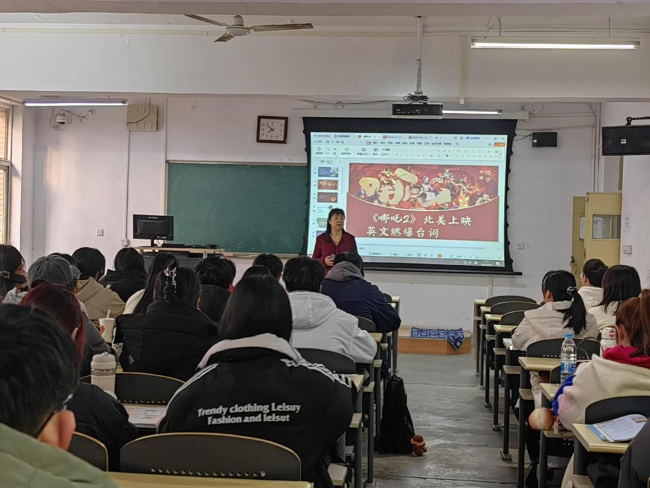 近期热映的国产动画电影《哪吒2》成为了开学第一课的鲜活教材。教师们精心设计了丰富多样的教学活动,引导学生对电影中的经典台词进行翻译练习和文化解读。