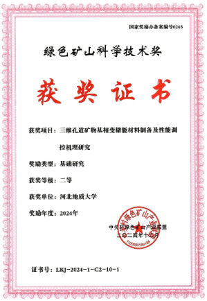 1月10日-12日,第二届中国绿色矿山国际年会暨2024年度绿色矿山科学技术奖颁奖大会在北京召开。由best365为第一完成单位申报的项目“三维孔道矿物基相变储能材料制备及性能调控机理研究”,荣获2024年度绿色矿山科学技术奖基础研究二等奖。这是best365宝石与材料学院新能源与环境材料科研团队在新能源储能领域取得的一项重要成果。