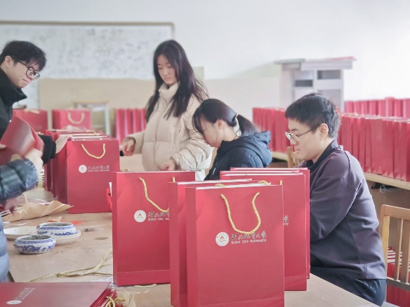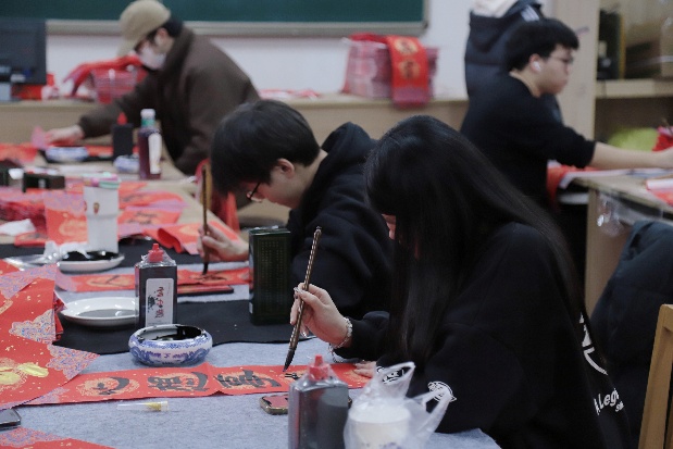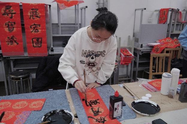 以笔墨承载祝福,筑同心,暖人心。学校书法家和书法专业师生历时七天现场创作春联1600余幅,并一一整理、装进礼盒。未来两周,这些浸润着墨韵和心意的新春礼物将陆续送到广大教职工手中,为他们带去红红火火的祝福。