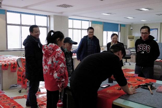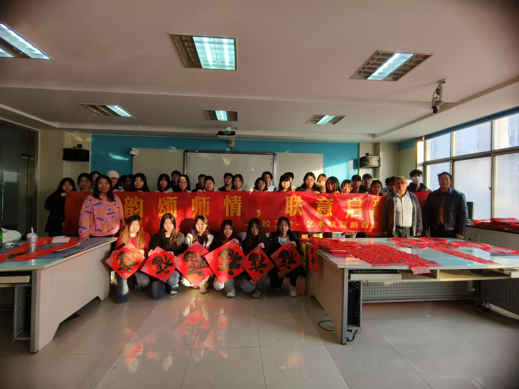 妙笔生花送福瑞,翰墨飘香迎新春。元旦前夕,由校工会、艺术学院联合举办的“书韵颂师情 联意启新程”送春联活动在艺术学院实验楼举行。校工会主席刘少华、艺术学院党委书记林琳、院长赵志策与参加活动的书法家和书法专业近60名师生一道向广大教职工送上新春祝福。