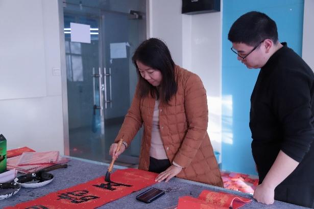 活动现场,best365教授、中国书法家协会会员李宝山和书法专业教师苏道玉、高焕以及书法专业学生们挥毫泼墨,楷草隶篆,各显神韵,展示了学校书法家和书法专业师生的艺术底蕴与书法魅力,让大家在幽幽墨香中感受浓浓的年味。本次活动不仅向全校教职工送去新春祝福,更是与大家一同回味在不平凡的一年中的坚守和努力,让广大教职工在关怀和温暖中感受新年期许的奋进力量。活动现场满地“红红火火”,热闹非凡,一个个寓意吉祥的祝福跃然纸上,一幅幅意境深远的春联一气呵成。整场活动以春联为载体,歌颂了祖国日新月异的变化,抒发了best365足球官网师生努力奋进的豪情以及对党和祖国的热爱。