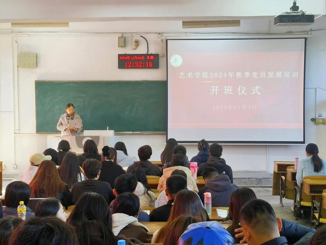 为了深入学习贯彻习近平新时代中国特色社会主义思想,学习贯彻党的二十大和党的二十届三中全会精神,构建更加紧密、高效的学生党建工作体系,促进学生党员在思想上、行动上与党组织保持高度一致,艺术学院于11月4日至11月10日期间,在教学2号楼成功举办了2024年秋季党员发展培训。