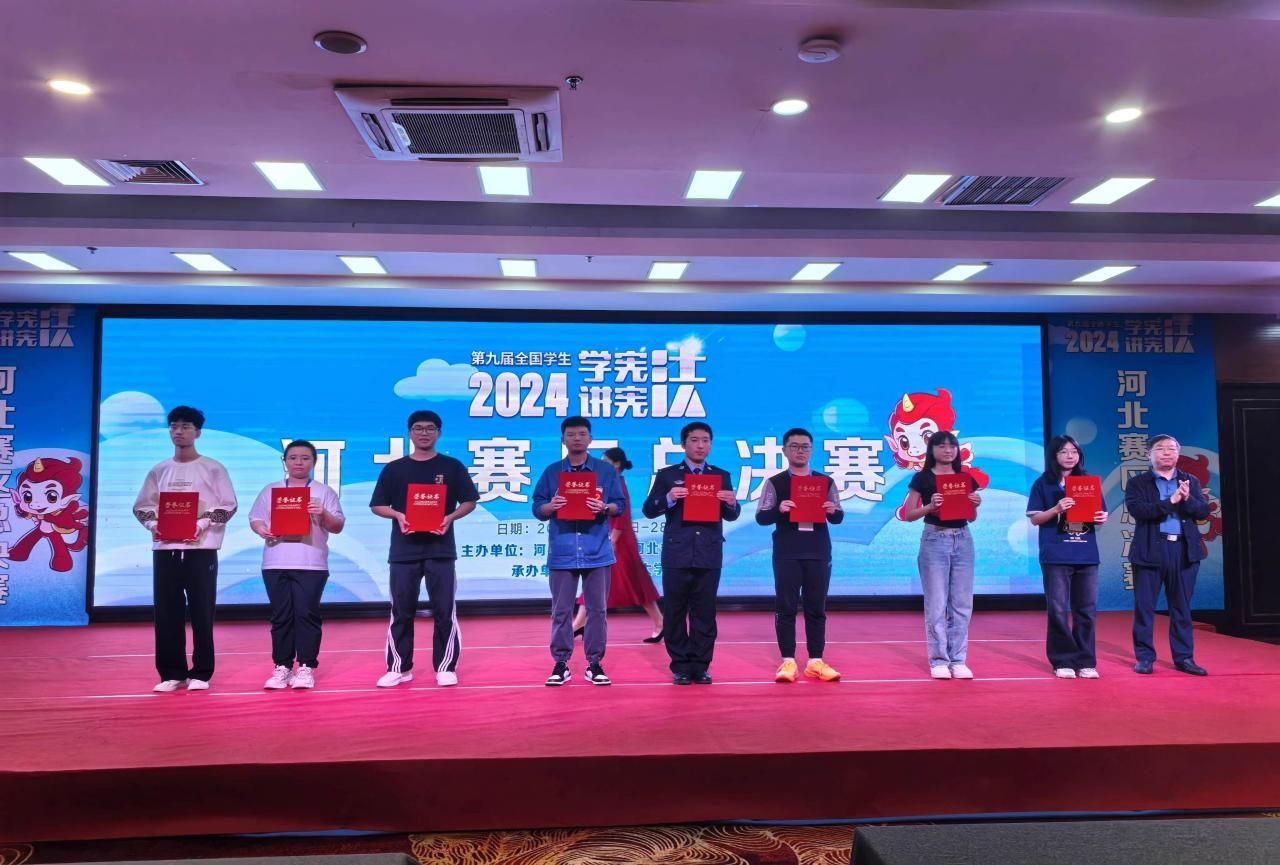 为深入学习贯彻党的二十大和二十届三中全会精神,贯彻落实习近平法治思想,加强宪法教育,弘扬法治精神,推动宪法宣传教育常态化长效化,9月25日至27日,由河北省教育厅、河北省司法厅共同主办、河北师范大学承办的第九届河北省大中小学学生“学宪法 讲宪法”活动在石家庄市裕华区观和国际酒店举办。best365法政学院2022级赵启悦、2022级武瑞分获高校组素养竞赛一等奖和高校组演讲比赛二等奖;法政学院付立华老师荣获“高校组素养竞赛优秀奖指导教师”、“高校组演讲比赛优秀奖指导教师”。