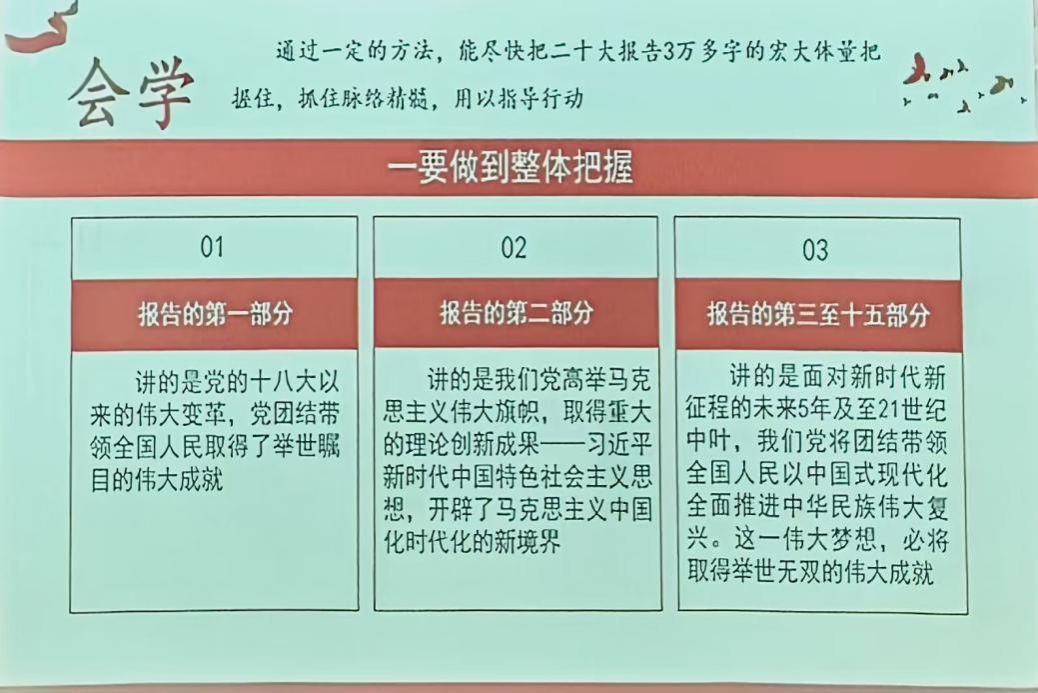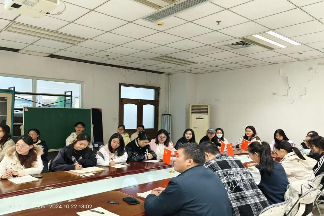 紧接着,杨旭辉对党的光辉历程进行了回顾,并阐述了中国共产党在马克思主义基础上所构建的“中国式马克思主义”。他要求大家在学习党课的过程中要深入理解党的先进理论,将思想入党、行动入党贯彻始终。此外,杨旭辉还提到了二十大报告中提出的“人才、科技、教育”三合一战略布局对青年一代的期望和要求,鼓励大家积极响应国家的号召,为国家的繁荣富强贡献自己的力量。
