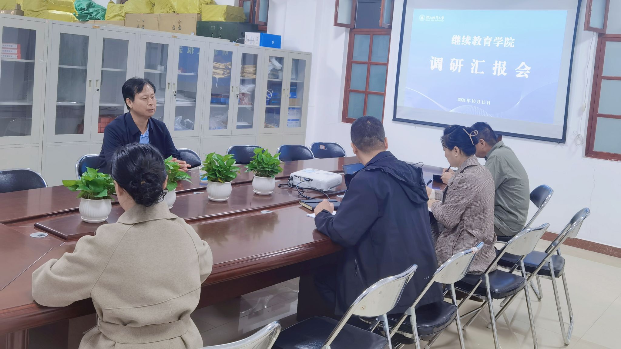 李彦苍听取工作汇报后,对继续教育学院已取得的成绩给予了肯定。他指出,学院还需要进一步解放思想、创新思路,要充分利用学校在地质行业内的突出优势,多渠道开拓市场;要深入进行市场调研,充分了解市场需求,紧贴实际做好项目设计。李彦苍还强调,学院所有教师要加强政策学习、积极努力实践、及时总结思考,要开展更深层次、全方位的高质量项目,为学校发展添砖加瓦。