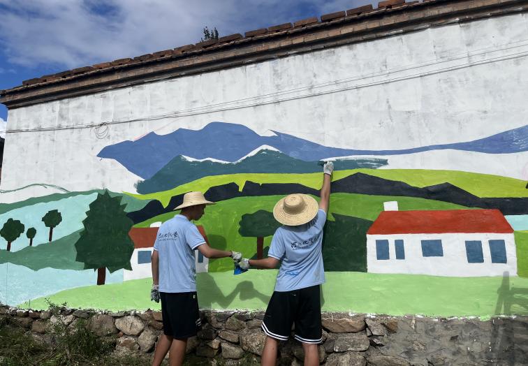 在为期一周的实践活动中,全体成员分工明确、合作默契,有的精心勾勒线条,有的专注填充色彩,用手中的画笔在墙面上描绘出充满生机与活力的画面,每一笔、每一画都倾注着对乡村的热爱。以美术为媒介,用墙绘方式装点,美化乡村环境,打通艺术融入乡村人民生活的“最后一公里”,助力乡村建设。让墙绘立足需求、扎根乡村,在反映当地的特色和文化同时,融合群众需求成为有温度的艺术。