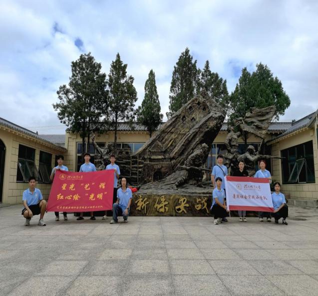 开展实践的同时,更注重思想育人,实践队师生一起前往怀来县新保安战役纪念馆,现场学习感悟革命精神,重温那激情燃烧的岁月。新保安战役是平津战役中的第一场大规模战斗,战役的胜利保护了古都北平的完整性,保护了中华民族文化遗产和重要名胜古迹不被摧毁,是解放军用热血书写的一部英雄篇章。实践队队员们走进展厅,在解说员的细致讲解中,了解烈士的生平事迹,从文字与照片中铭记党的伟大奋斗历程的艰辛与不易,聆听历史讲解,仔细观看珍贵史料,认真阅读红色故事和革命先烈的英雄事迹。通过参观学习,一起触摸历史脉络、瞻仰革命风采、坚定理想信念、厚植爱国情怀。