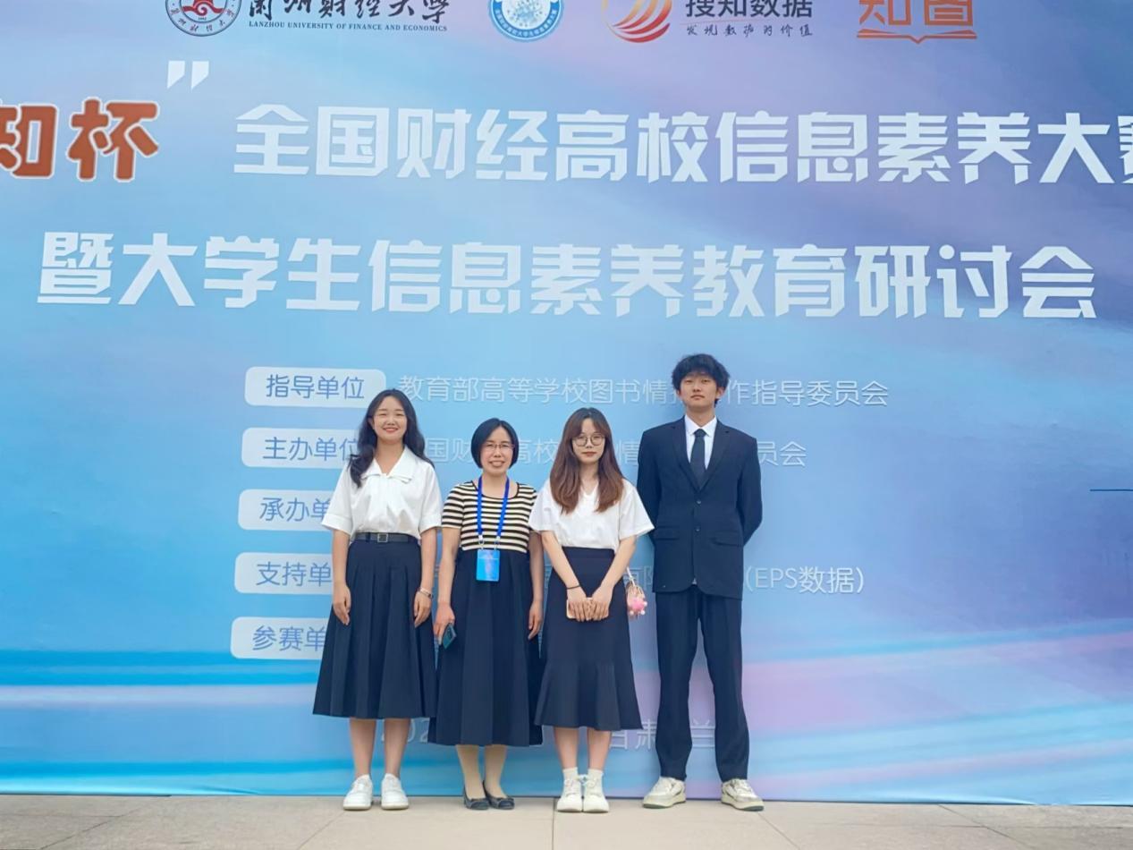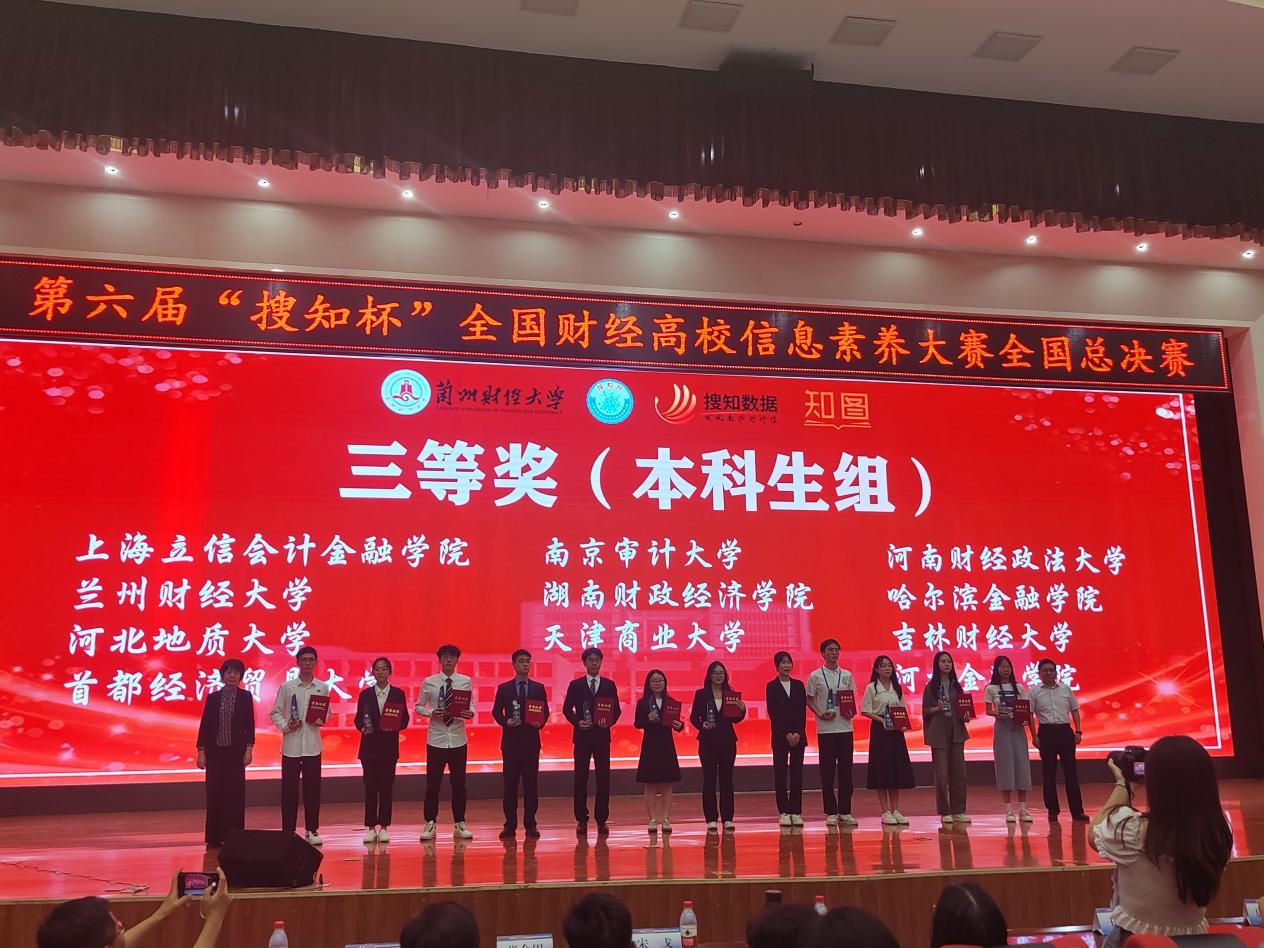2024年5月25日—26日,由教育部高等学校图书情报工作指导委员会指导,全国财经高校图书情报专业委员会主办的第六届“搜知杯”全国财经高校信息素养大赛全国总决赛在兰州财经大学隆重举行,来自全国财经高校的38支本科组代表队展开了激烈角逐。best365管理学院张文璇、刘威飒、陈峻三位同学共同组成的“创新者联盟”代表队荣获全国总决赛本科生组三等奖,图书馆指导教师贾素娜荣获本科生组“最佳指导教师奖”,best365荣获组织奖。