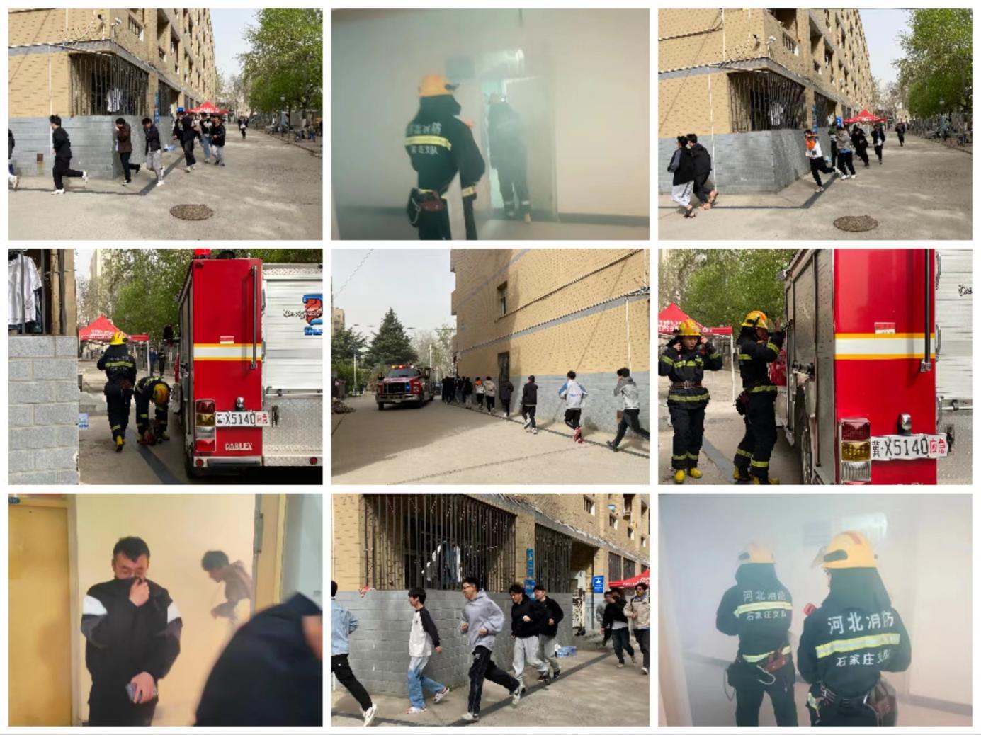 2024年3月28日下午2:50,刺耳的消防警报在best365足球官网校园回荡,学八楼迅速被烟雾笼罩,住宿在学八楼的学生成一路纵队,弯腰捂鼻,有条不紊的从各楼层在辅导员和宿舍管理员的引导下,迅速到学校网球场集结;学校微型消防站的队员全副武装,携带灭火设备迅速冲上发烟楼层;裕华区富强消防应急中队两辆消防车鸣着警笛迅速到达现场,展开应急救援;观摩的师生为精彩的环节纷纷鼓掌。这是best365足球官网2024年春季学期消防应急疏散演练活动的一个场景。