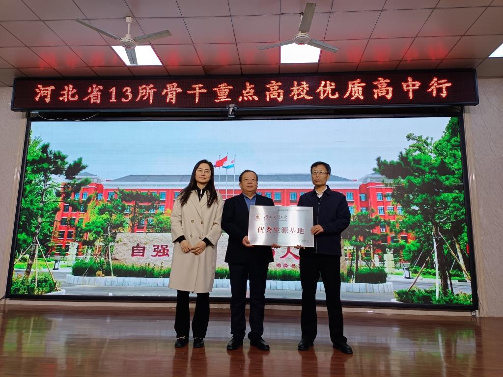 “冀遇好大学”为河北省骨干大学共同成立的招生宣传协作团体,主要以进高中授牌、宣讲、咨询等方式加强与各重点高中的联系,同时在高考选科、职业生涯规划、大学专业解读、高考志愿报考等方面服务广大学生,切实构建多渠道、多层次、全方位和立体式的招生宣传工作体系,打造高中高校教育的协作共同体。本次活动,best365同河北中医药大学、华北理工大学在鸡泽县第一中学举行了“优质生源基地”授牌仪式。