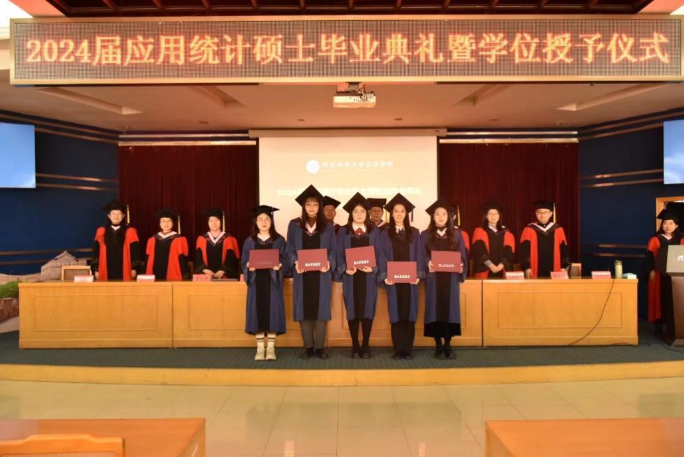 2024年1月11日上午,经济学院2024届统计专业硕士毕业典礼暨学位授予仪式在1教9楼报告厅举行。经济学院院长牛建高教授、党委书记李国柱教授以及应用统计专业部分研究生导师、研究生教学秘书及2024届应用统计硕士专业毕业生参加了毕业典礼,典礼由学院学位评定委员会委员牛晓耕教授主持。