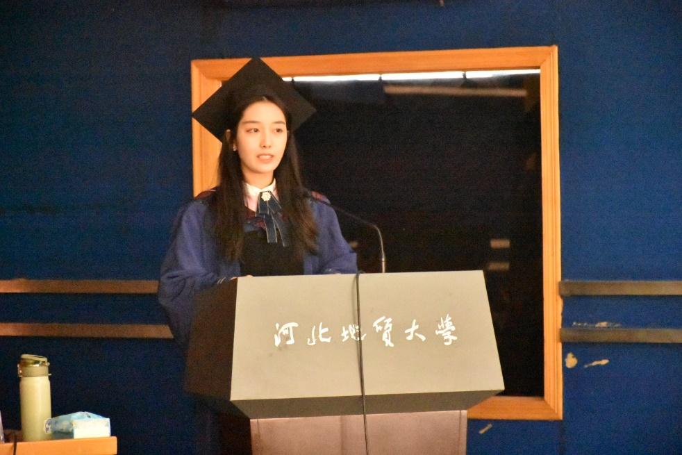 接着,毕业生代表王立奇发言,她回顾了两年半的研究生生涯,对母校、老师和同学们表达了感谢与祝福。
