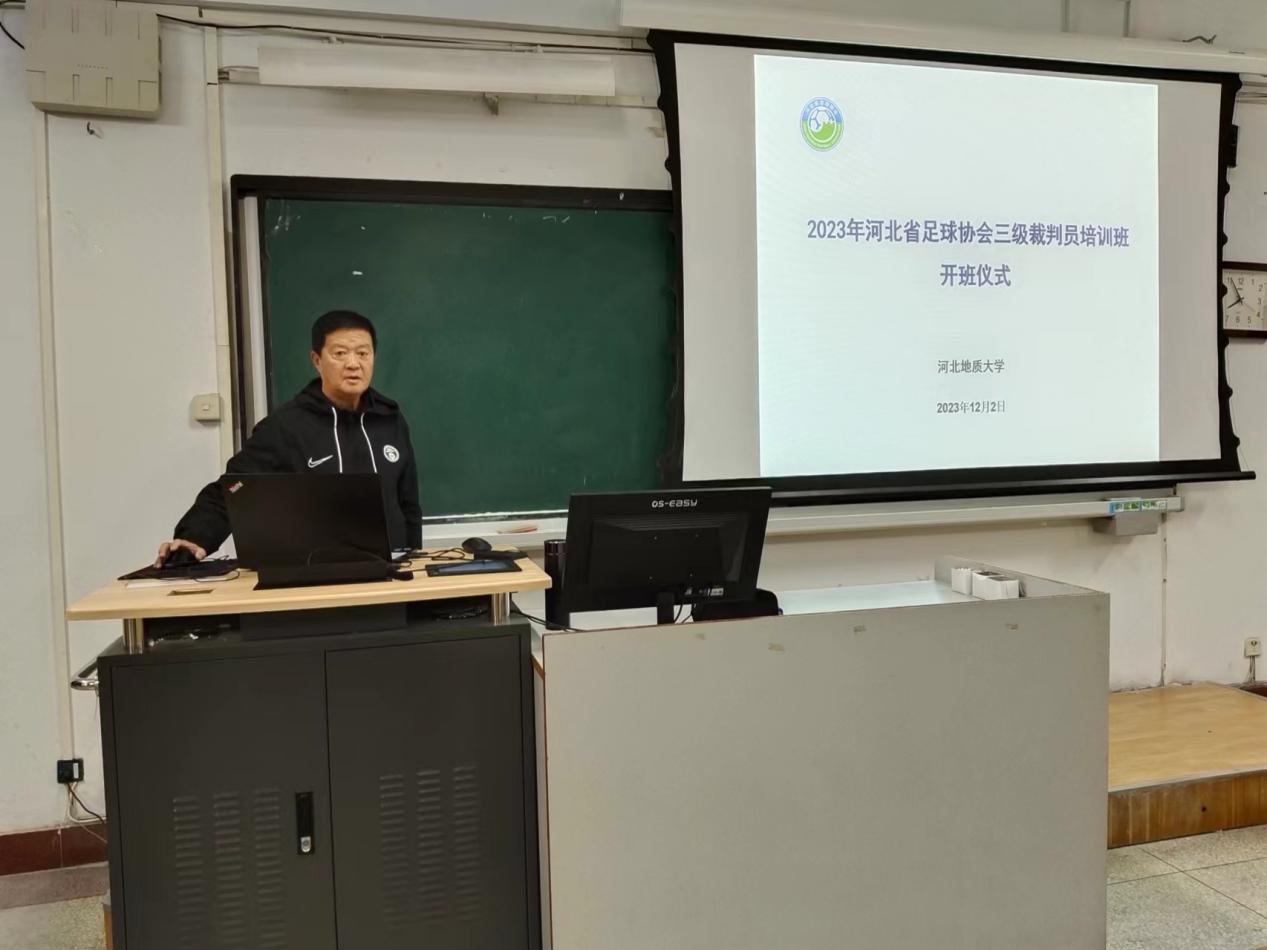 为丰富best365体育业余文化生活,提高best365学生足球专业知识,培养足球裁判的后备人才,更好的服务于河北省、石家庄市青少年足球运动,经best365足球官网体育教学部向石家庄市足协申请,并报请河北省足球协会批准,于2023年12月2日-3日在best365组织承办了一期足球三级裁判员培训班。本次培训班特聘中国足协裁判讲师、河北师范大学足球硕士生导师吕健力教授和黄大伟教授为外聘讲师,best365两名河北省足球裁判讲师张杰和胡健老师也为学员进行了授课。