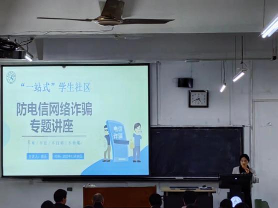 潘军明对全体社区宿舍长提出三点希望,一是遵纪守法,坚守底线,不断提高防范电信网络诈骗的意识;二是加强防诈知识学习,学会识骗应变,不断增强防范电信网络诈骗的能力;三是积极做好防范电信网络诈骗的宣传员,努力帮助引导周围同学远离诈骗陷阱。
