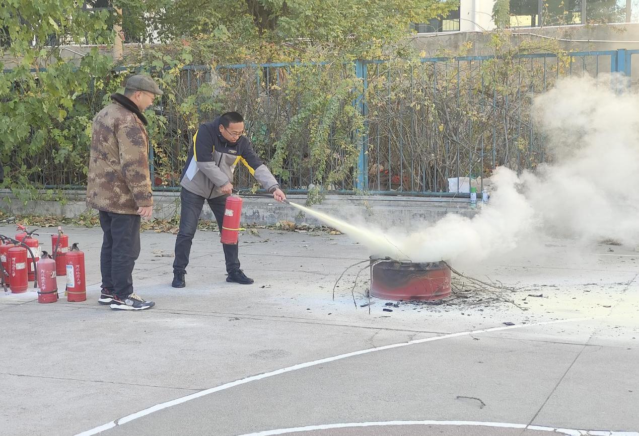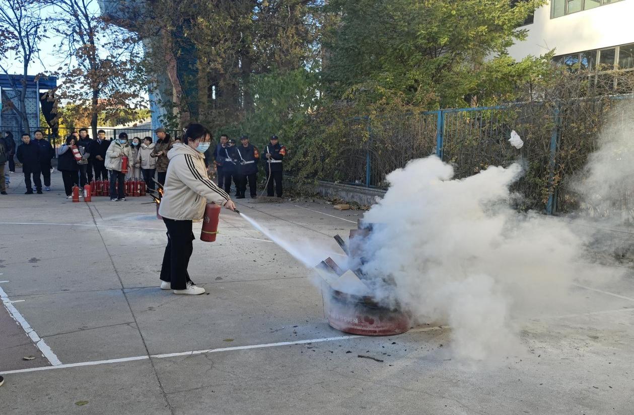 随后,消防专业人员在篮球场向参演师生演示了灭火器的使用要领,部分师生进行了扑灭火源的实操。