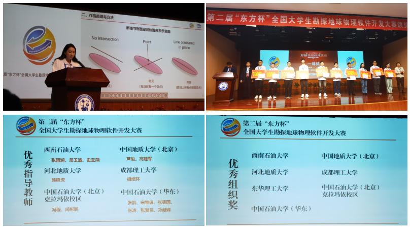 2023年第二届“东方杯”全国大学生勘探地球物理开发大赛于10月20日-21日在中国石油大学(华东)举行。工业和信息化部信息技术发展司副司长王威伟,东方地球物理公司副总经理、安全总监张建军,中国石油大学(华东)副校长张玲玲,国家示范性软件学院联盟副理事长、北京大学软件与微电子学院院长吴中海教授,东方地球物理公司副总工程师、物探技术研究中心党委书记宋强功,中国石油大学(华东)校长助理王效美以及大赛评委专家、东方地球物理公司和中国石油大学(华东)相关单位负责人,各参赛高校师生代表200余人出席闭幕式,青岛软件学院执行院长、计算机科学与技术学院院长庞善臣主持闭幕式。中国石油大学(华东)通过微博、微信视频号、抖音等平台对大赛决赛进行直播,吸引近2万名观众线上观赛。