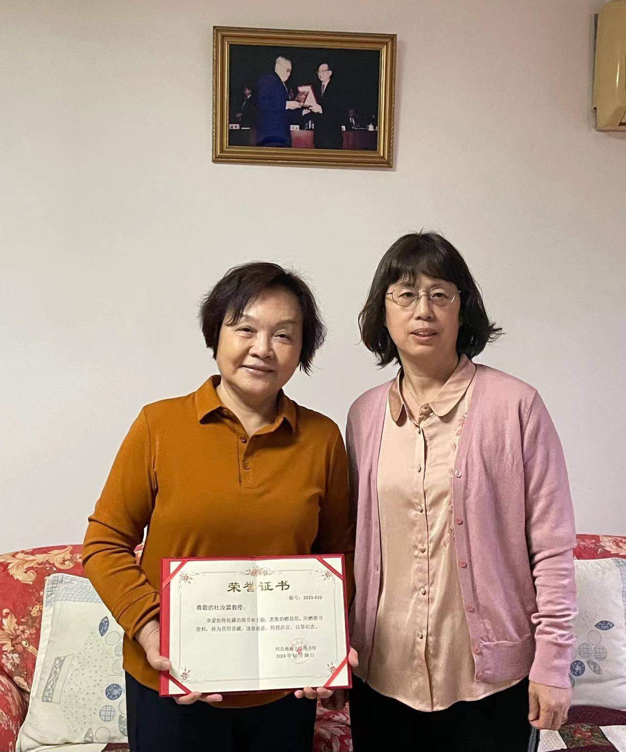 张翠军馆长代表学校向杜敏老师颁发捐赠证书