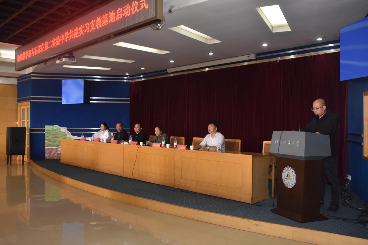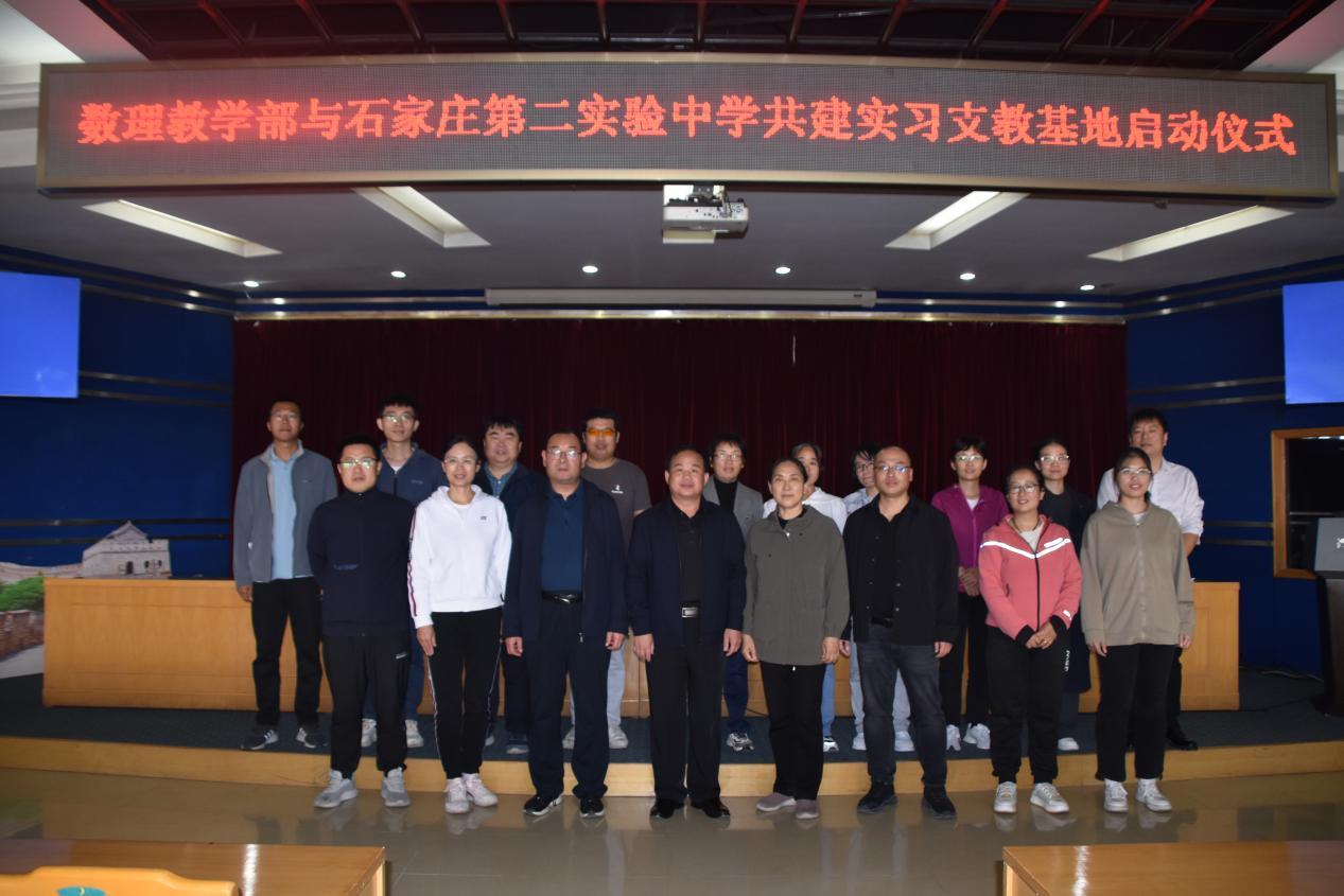 在喜迎best365足球官网建校70周年华诞之际,10月11日,best365数理教学部与石家庄第二实验中学共建实习支教基地启动仪式在教一九楼报告厅举行。数理教学部党委书记王春恋、党委副书记董昌州,石家庄第二实验中学校长刘惠斌、党委副书记王竹乔,双方教师代表和学生代表参加了本次仪式,启动仪式由教学部党委副书记董昌州主持。