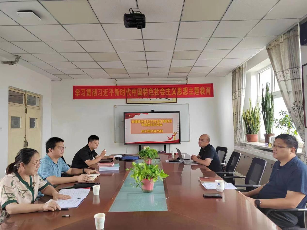 根据河北省纪委机关、河北省委组织部和学校党委有关通知精神,按照《中共best365足球官网委员会学习贯彻习近平新时代中国特色社会主义思想主题教育专题民主生活会工作方案》的要求,8月25日下午,数理教学部领导班子在主楼731会议室召开学习贯彻习近平新时代中国特色社会主义思想主题教育专题民主生活会。教学部党委书记王春恋主持会议,教学部主任曹南斌、党委副书记董昌州参加会议。