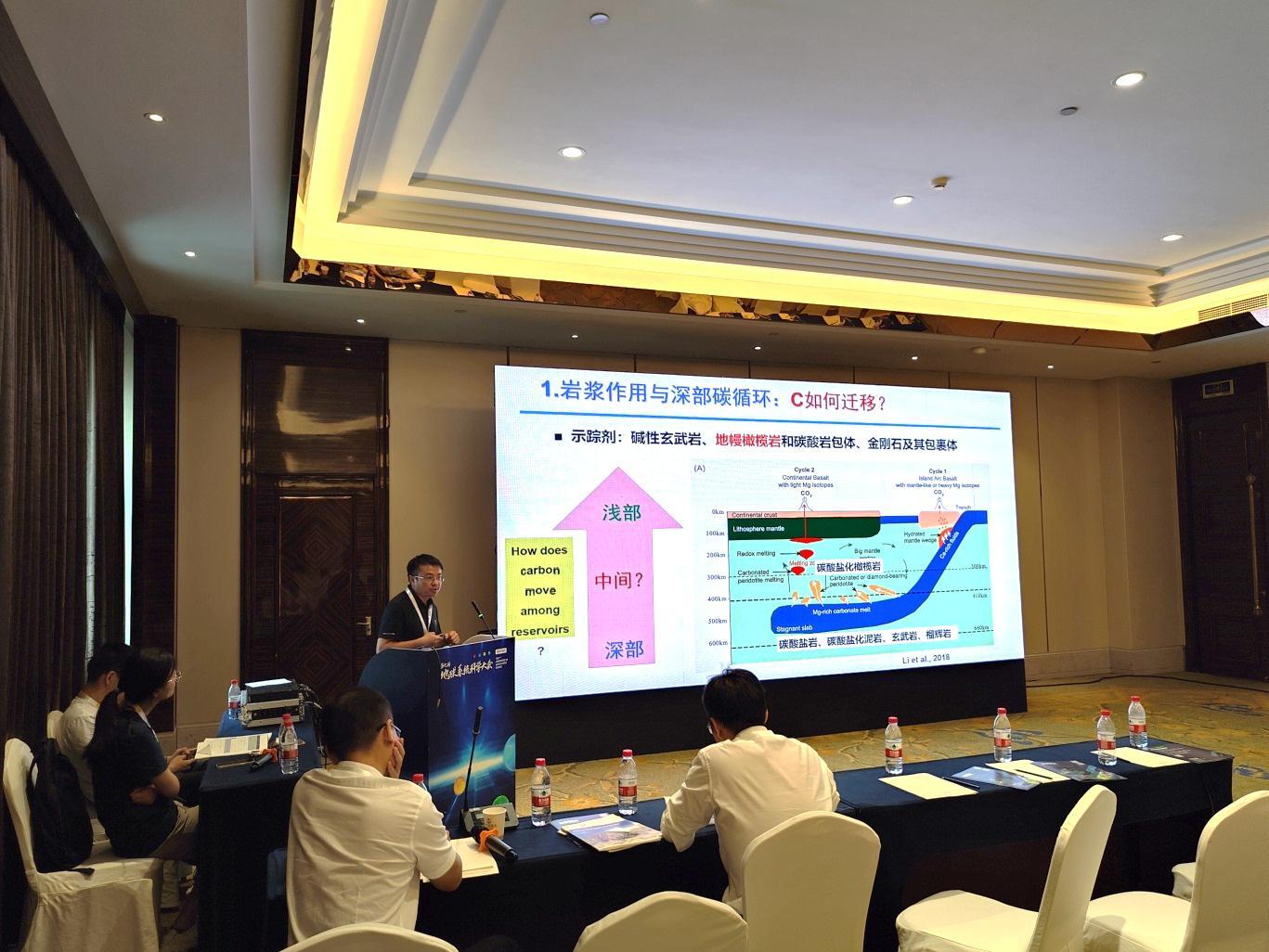 王志伟教授在会上做了题为“华北克拉通北部晚古生代地幔交代作用与深部碳循环:早二叠世超镁铁质岩的制约”的口头报告,分别从岩浆作用与深部碳循环、冀北高寺台早二叠世超镁铁岩地幔源区、岩浆演化与补给过程、动力学背景与深部碳循环4个方面,阐述了冀北早二叠世富单斜辉石岩的母岩浆起源于受碳酸盐熔体交代的软流圈地幔的部分熔融,并与岩石圈地幔发生相互作用,岩浆房在地壳浅部经历了多期深部岩浆补给和富铁熔体注入,促进了岩浆的上升运移以及地球深部碳向浅部迁移,同时还提出华北克拉通北部晚古生代三期岩浆作用可能是晚石炭末期-早二叠世早期全球大气CO2回升的主要贡献者之一。