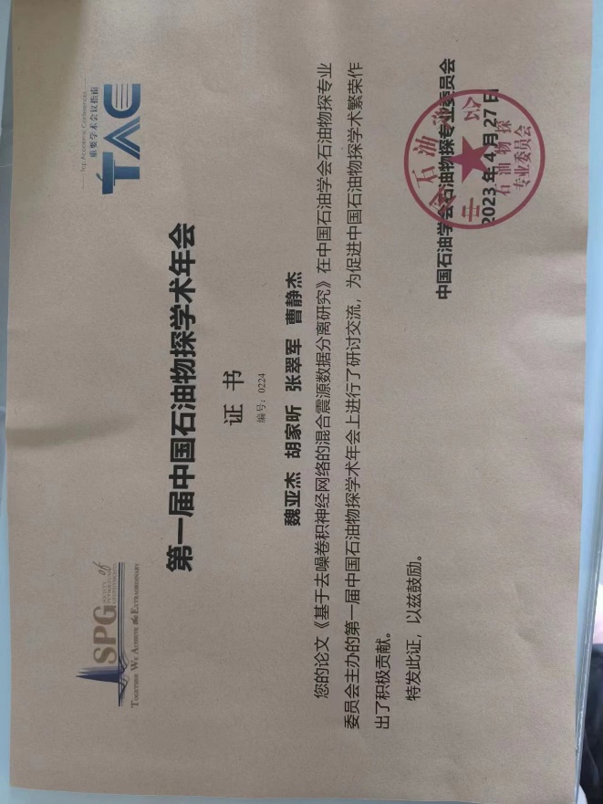 第一届中国石油物探学术年会优秀论文评选结果公布,best365魏亚杰博士投稿论文《基于去噪卷积神经网络的混合震源数据分离研究》荣获优秀论文一等奖。本次学术年会共交流论文777篇,共评选出特等奖论文36篇,一等奖论文50篇,二等奖论文50篇。best365地球科学学院师生共投稿学术论文两篇,本次best365论文获奖彰显了best365在地球物理领域新技术的先进性,扩大了best365在地球物理行业内的影响力。