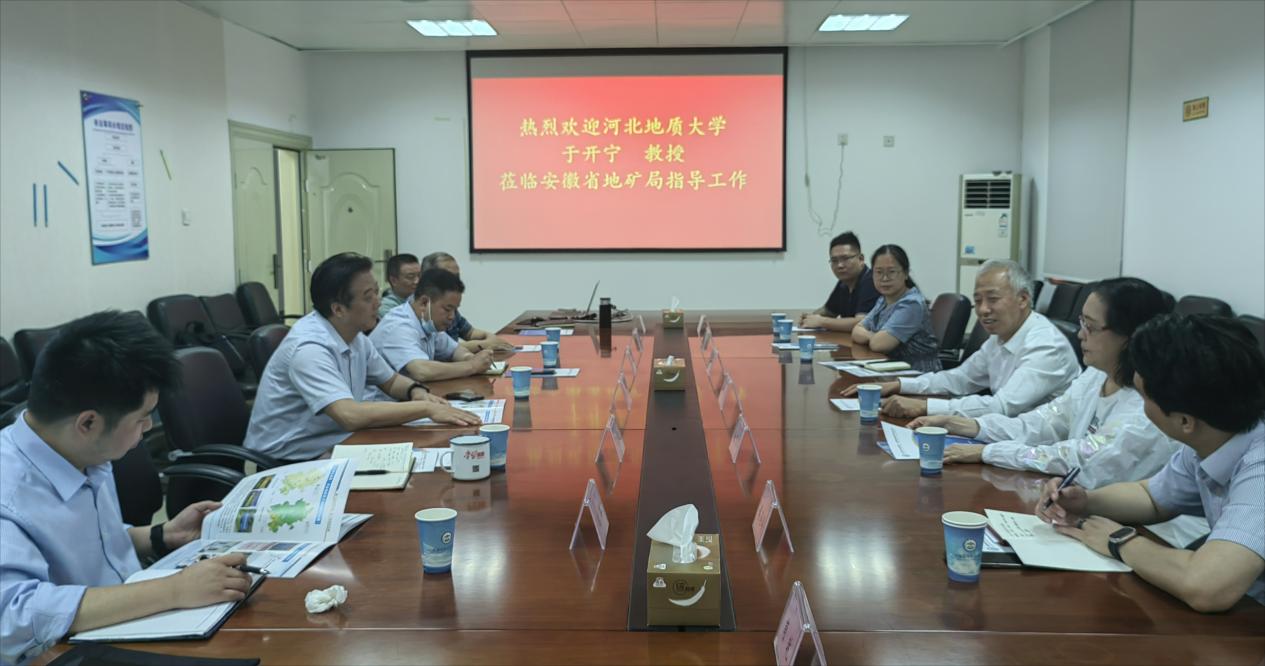 交流座谈会上,侯其标副局长对于开宁院长一行的到来表示热烈欢迎,介绍了安徽省地质矿产勘查局的发展历程、现状和规划。地矿局成立于1958年6月,1999年7月由原国土资源部划归安徽省管理。多年来,不断拓展领域,服务社会成效斐然。在传统水文地质、工程地质、环境地质基础上,将地质工作延伸拓展至农业地质、城市地质、旅游地质等多个领域,积极开展地质环境调查与评价、地质灾害预报预警、矿山地质环境调查与评价、地下水资源调查与监测、地质资源保护和利用等。随后,各局所属单位相关部门负责人介绍了各部门的主体业务情况和合作建议。
