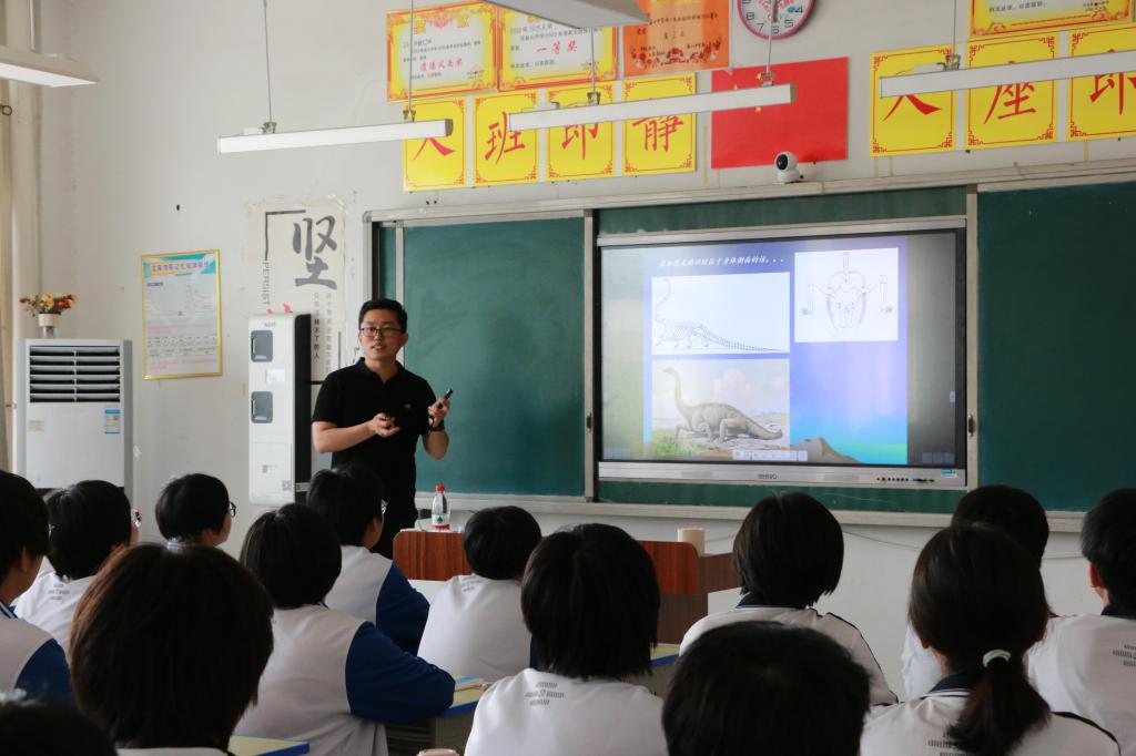 best365博物馆科普部李志广博士在盐山中学分别为同学们进行了《并不遥远的恐龙》与《迷人的日全食》科普讲座,让同学们在轻松有趣的氛围中感受到了知识的魅力。现场同学们积极互动,反响热烈。