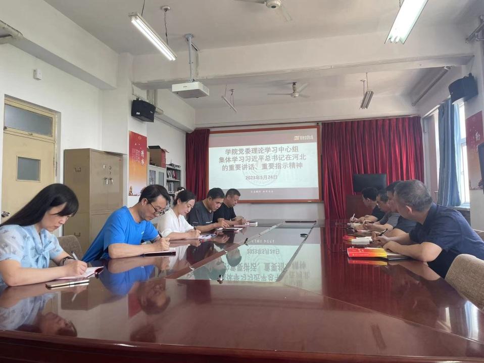 5月24日上午,信息工程学院党委组织学院理论学习中心组成员在主楼508集体学习习近平总书记在河北考察时的重要讲话和重要指示精神。学院党委书记王树明领学。