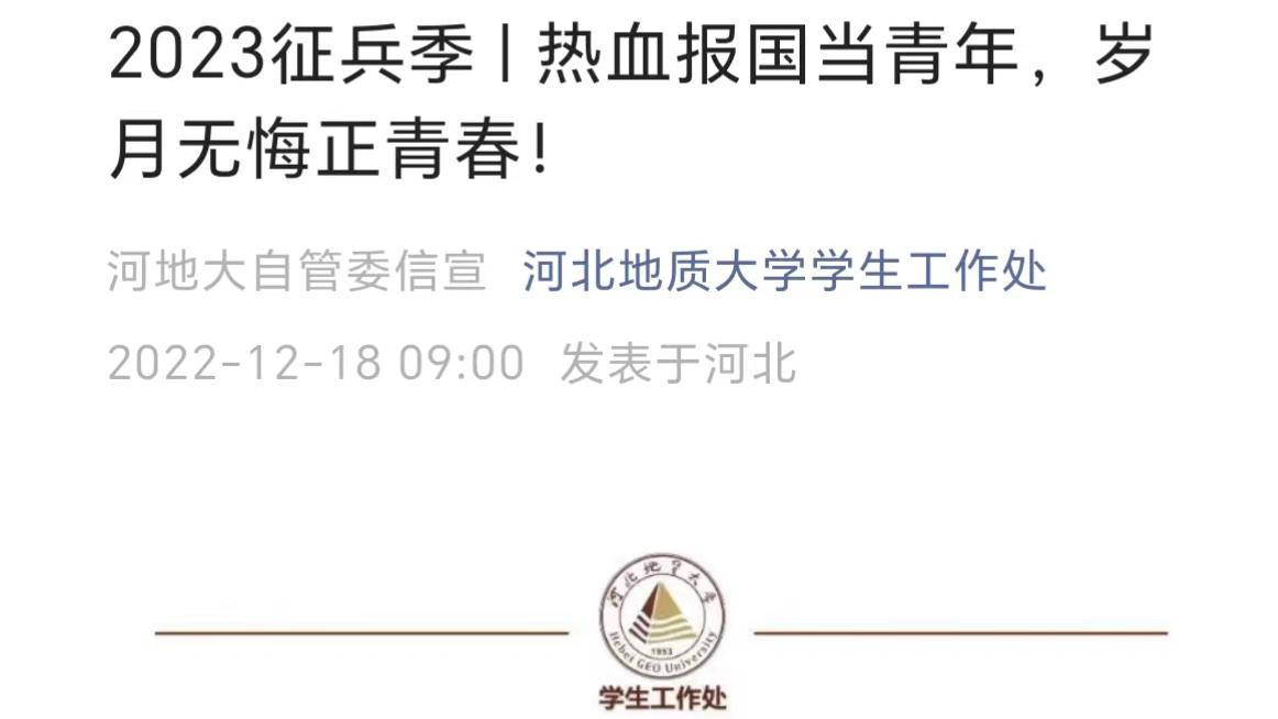 学生工作处微信公众号发布征兵宣传文章